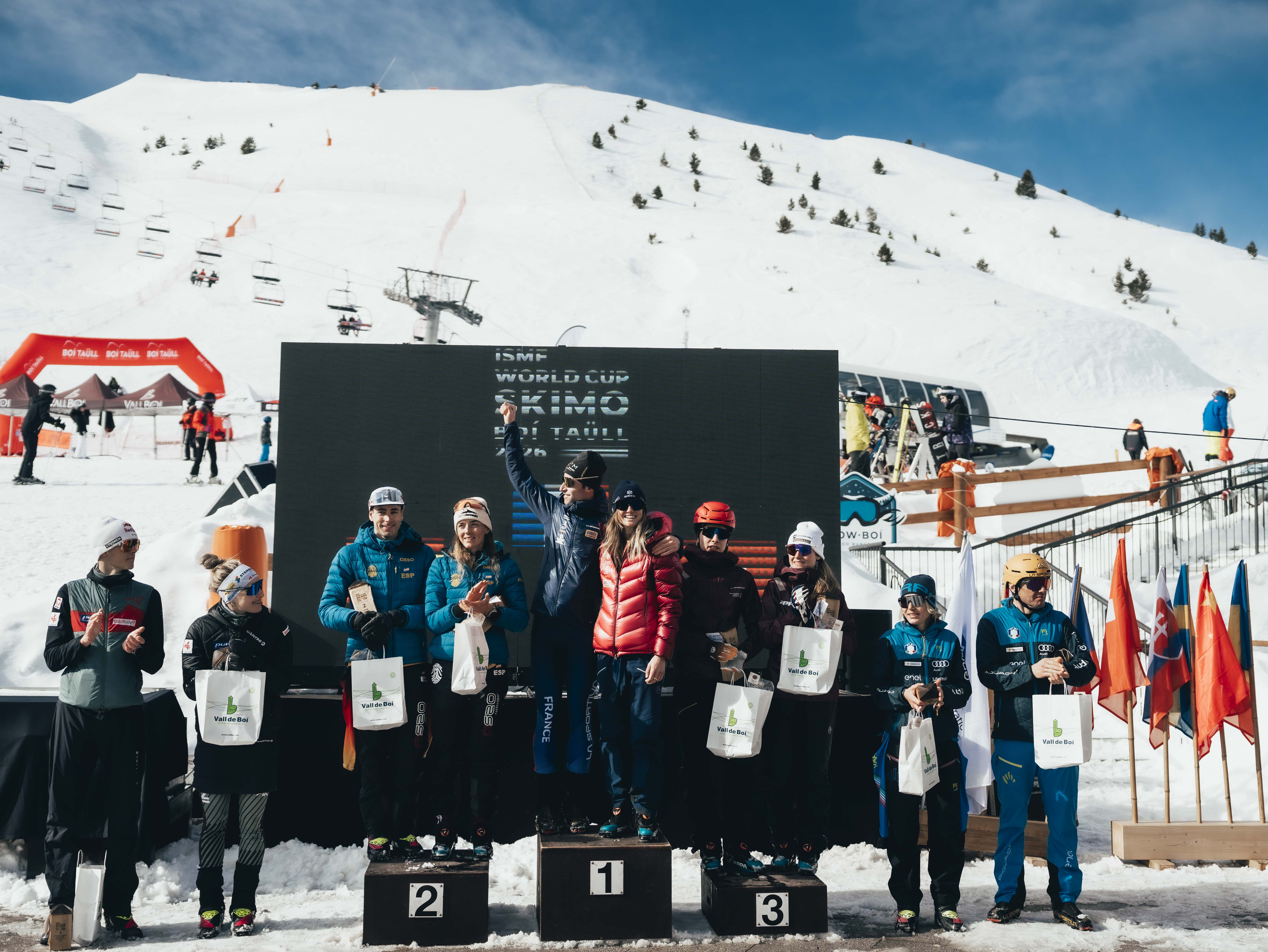 Emily Harrop et Thibault Anselmet n’ayant pas participé au premier relais mixte de la saison à Solitude (USA), ils prenaient leur premier départ de la saison en relais mixte à Boi Taüll. Ce fut une grande réussite puisqu’ils ont mené la course du début à la fin et se sont imposés en 27:47.5. Une belle bataille a eu lieu pour compléter le podium et ce sont les espagnols Ana Alonso Rodriguez et Oriol Cardona Coll qui ont décroché la deuxième place en 28:04.4, suivis par les suisses Marianne Fatton et Jon Kistler en 28:17.4.